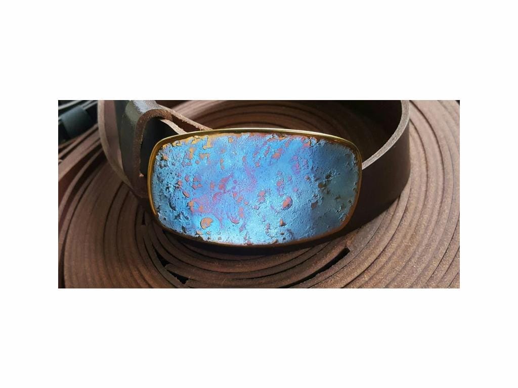 Hand forged blue gold buckle with belt (your colour choice) Use drop down menu to choose colour & gift bag.
