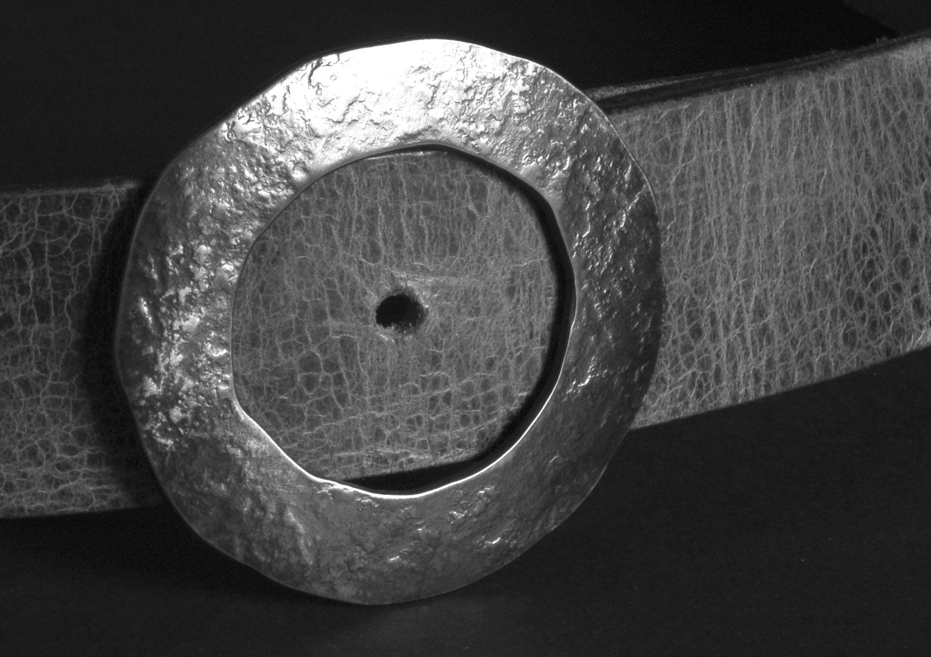 Buckle is ultra slim fit and will accept a 1-1/2" leather belt. (sold separately on our ironartcanada site.)
