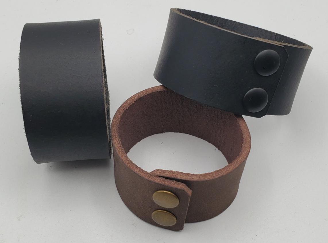 Recycled cuffs are made from offcuts from leather belts done in our studio.