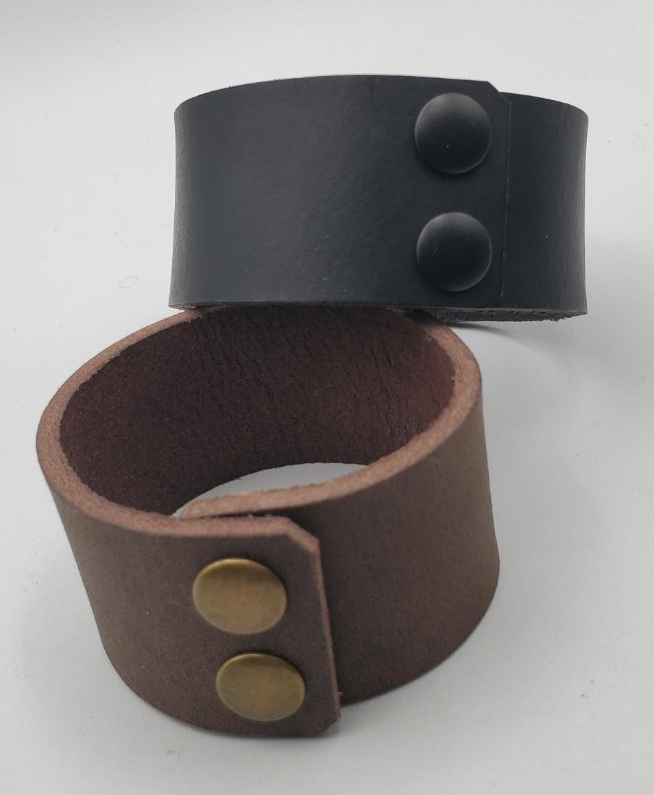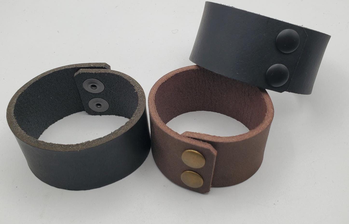 Leather Wrist Cuff Unisex Leather Bracelet Father's Day Cuff w/ 2 snap closures Unisex Wrist Cuff Boyfriend or Girlfriend Gift w Gift Bag