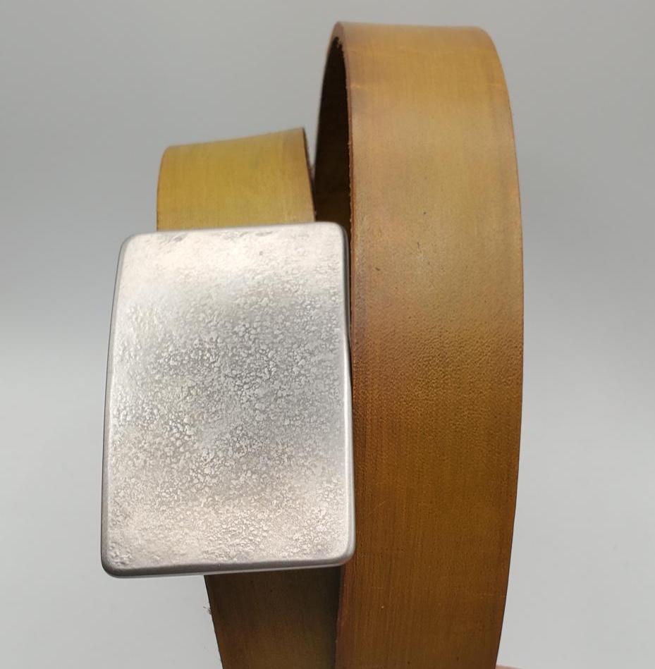 Belt & Buckle Set Simple Hand Forged Buckle with Chartreuse 1-1/4" wide hand dyed belt.