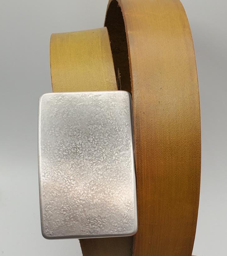 Buckle measures 2-1/2" x 1-1/2" and will accept a 1-1/4" leather belt.