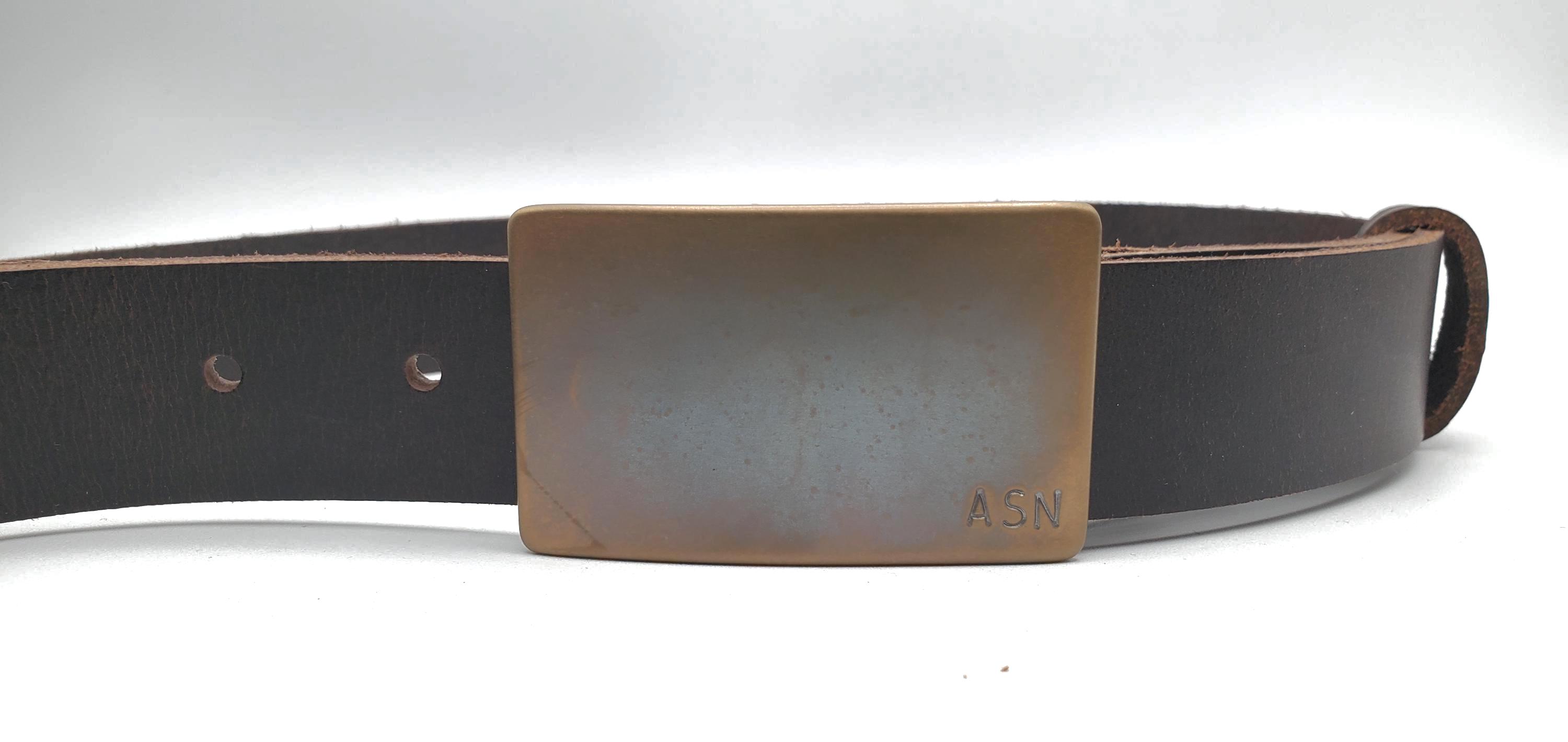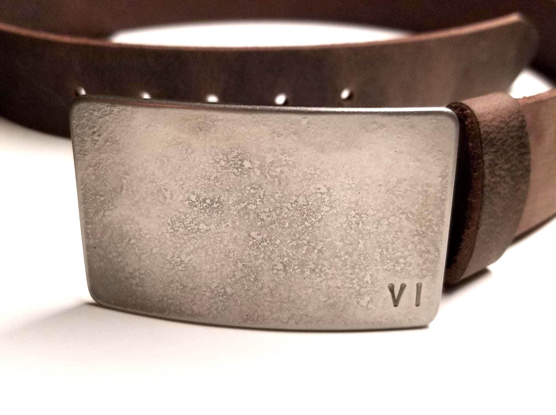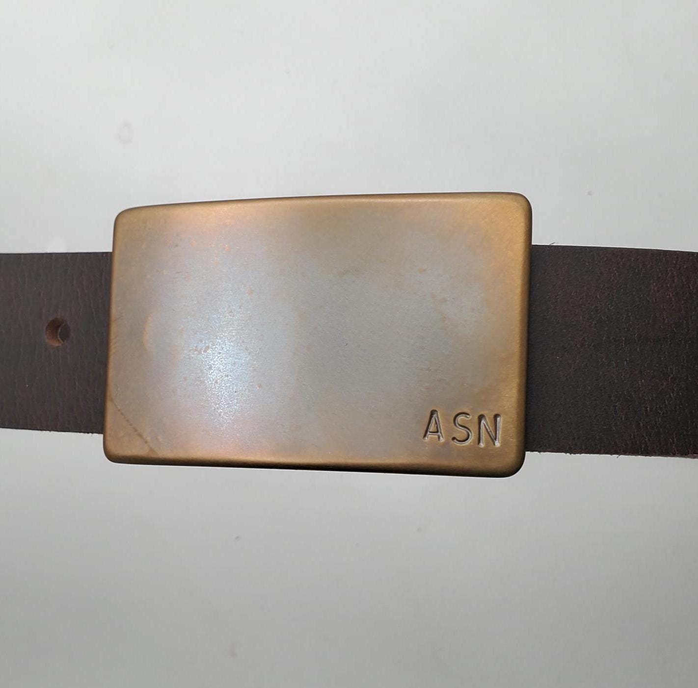 Simple Personalized Bronze or Silver Belt Buckle Set, Hand Forged Stainless Steel & Leather Belt, Your choice of colour