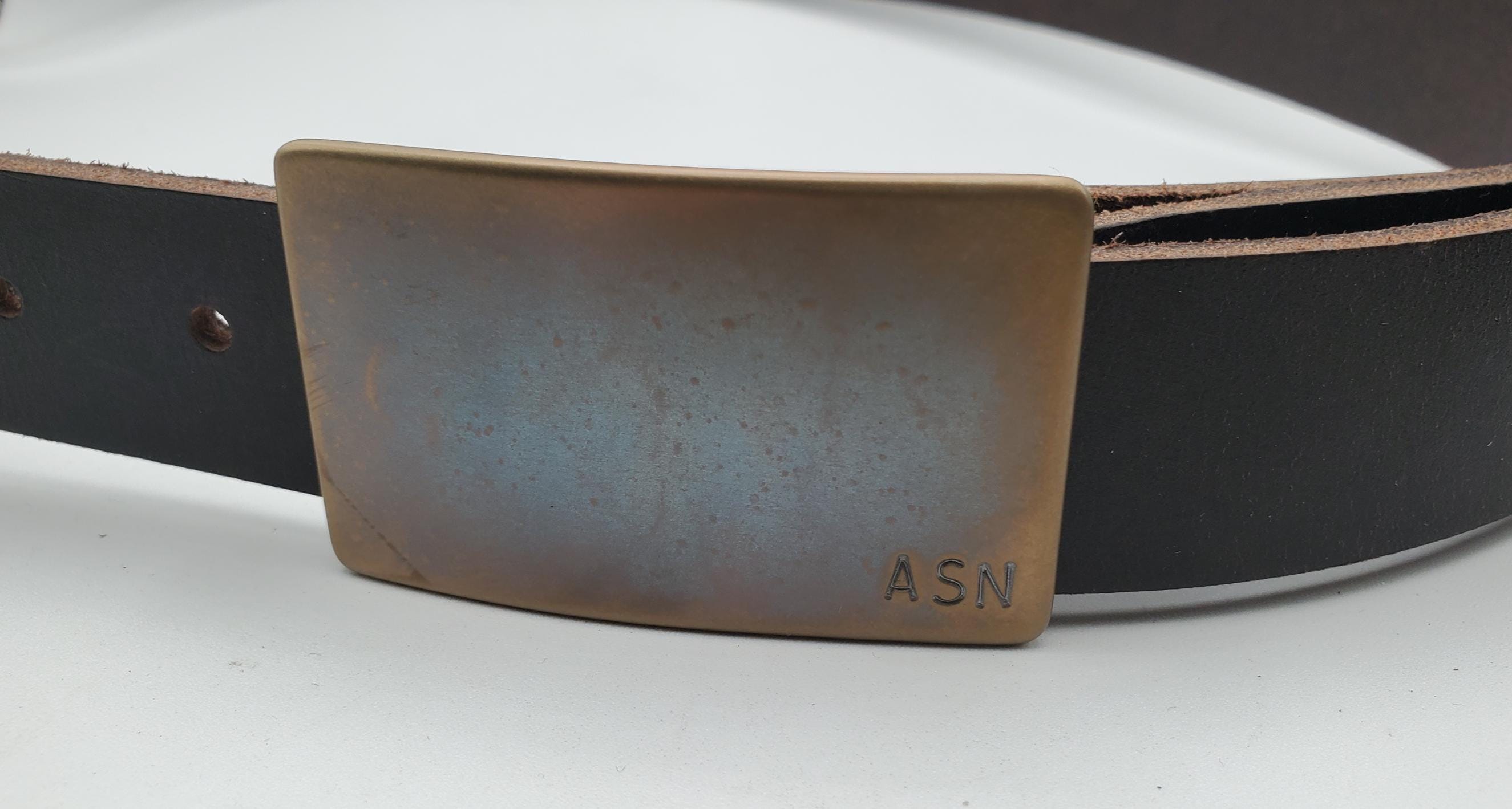 Personalized Hand-Forged Stainless Steel Buckle with Leather Belt. Your choice of colour