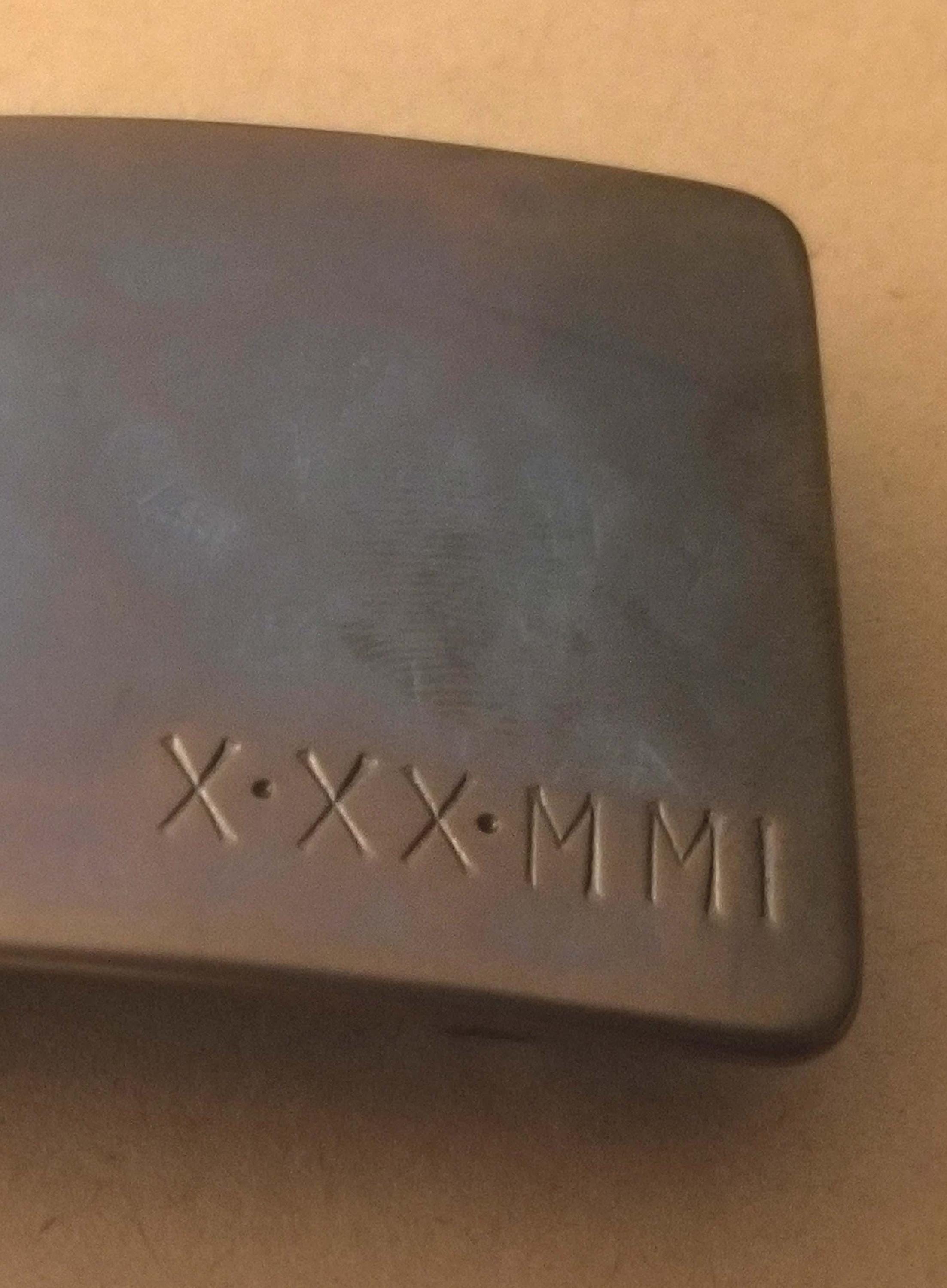 Belt buckle is hand-punched with either your Initials, Roman Numeral Date, Tally or Words (on front or back) representing your anniversary special occasion or special message.