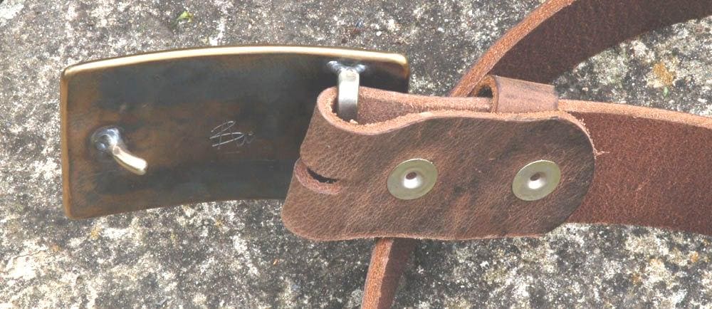 Buckle is heat treated to a rustic bronze.